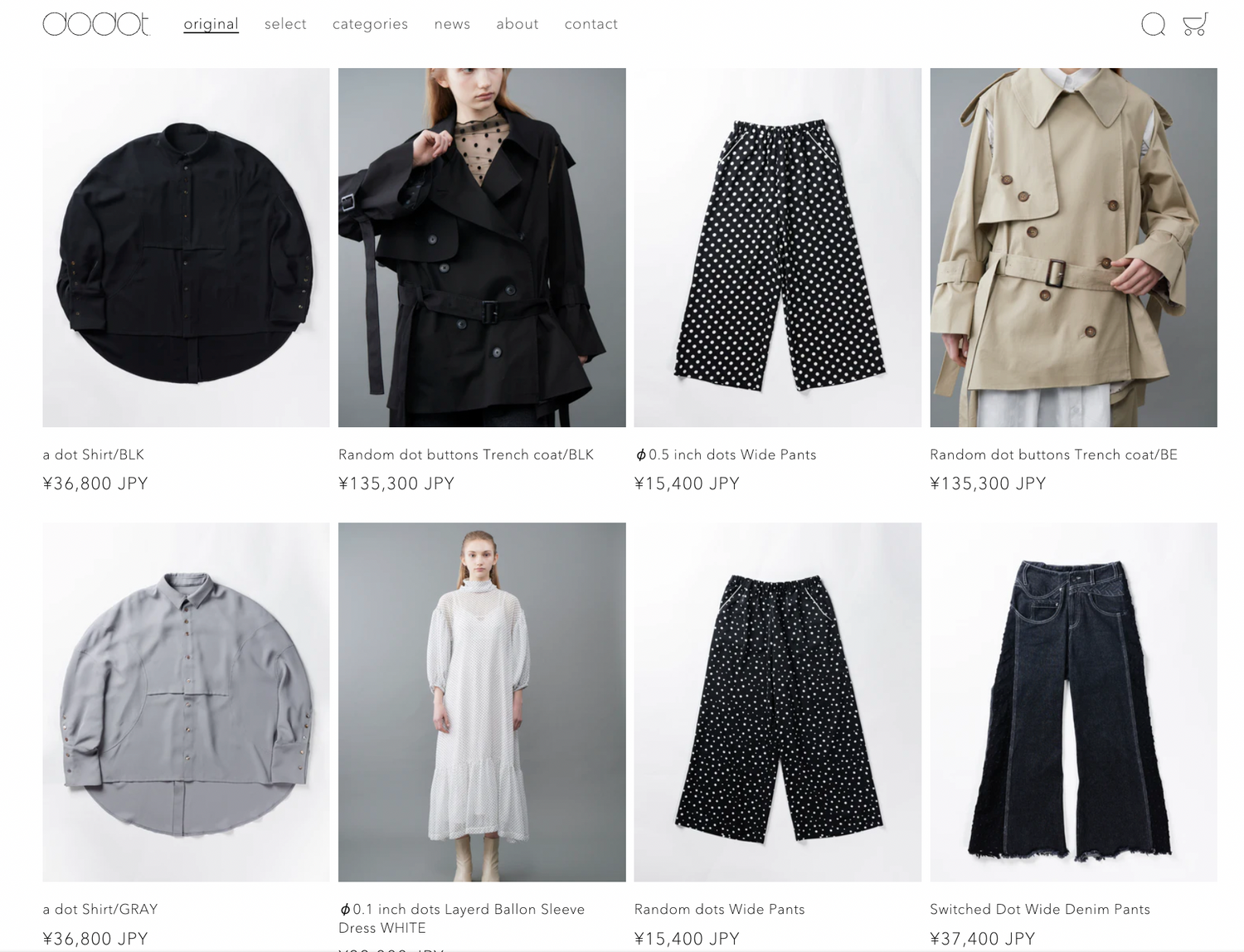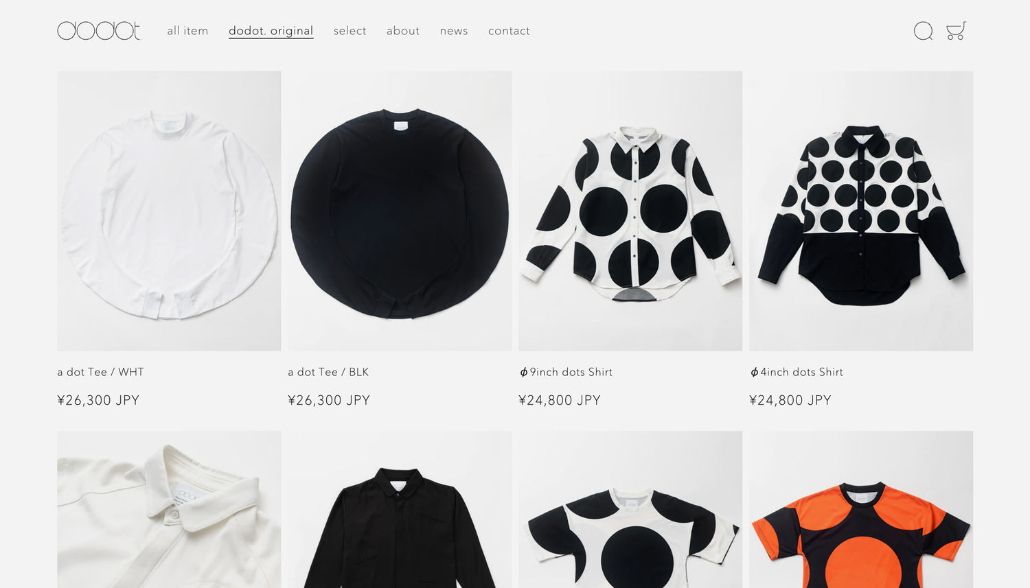"dodot." is a specialty dots clothing store that carries over 100 different types of dots patterned clothing.