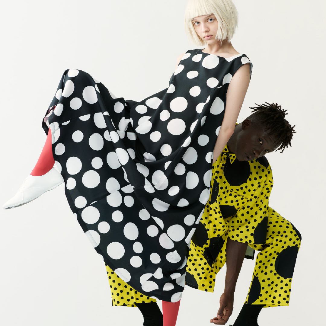 2022年AWのコレクションを発表しました。様々な種類のファーでドット柄を表現したスウェットシャツや、夜空の星を箔でプリントしたもの、ドットのキルティングスカートなど、ここでしか手に入らないドット柄ファッションを掲載しております。