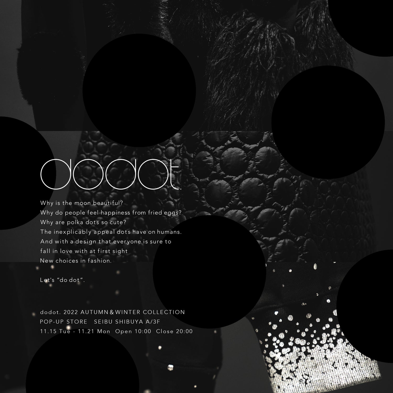 2022年11月15日(火)〜11月21日(月)まで、西武渋谷店にてドットファッションブランド「dodot.(ドドット)」のポップアップストアをオープンします。店頭限定で先行予約を実施するコートや、最新のアイテムも販売します。
