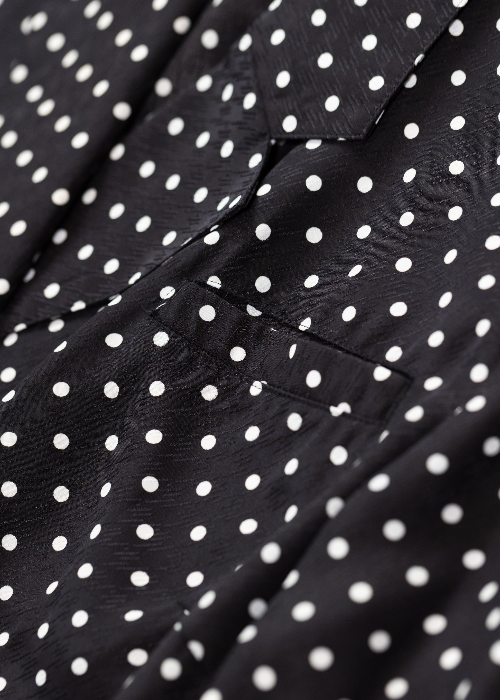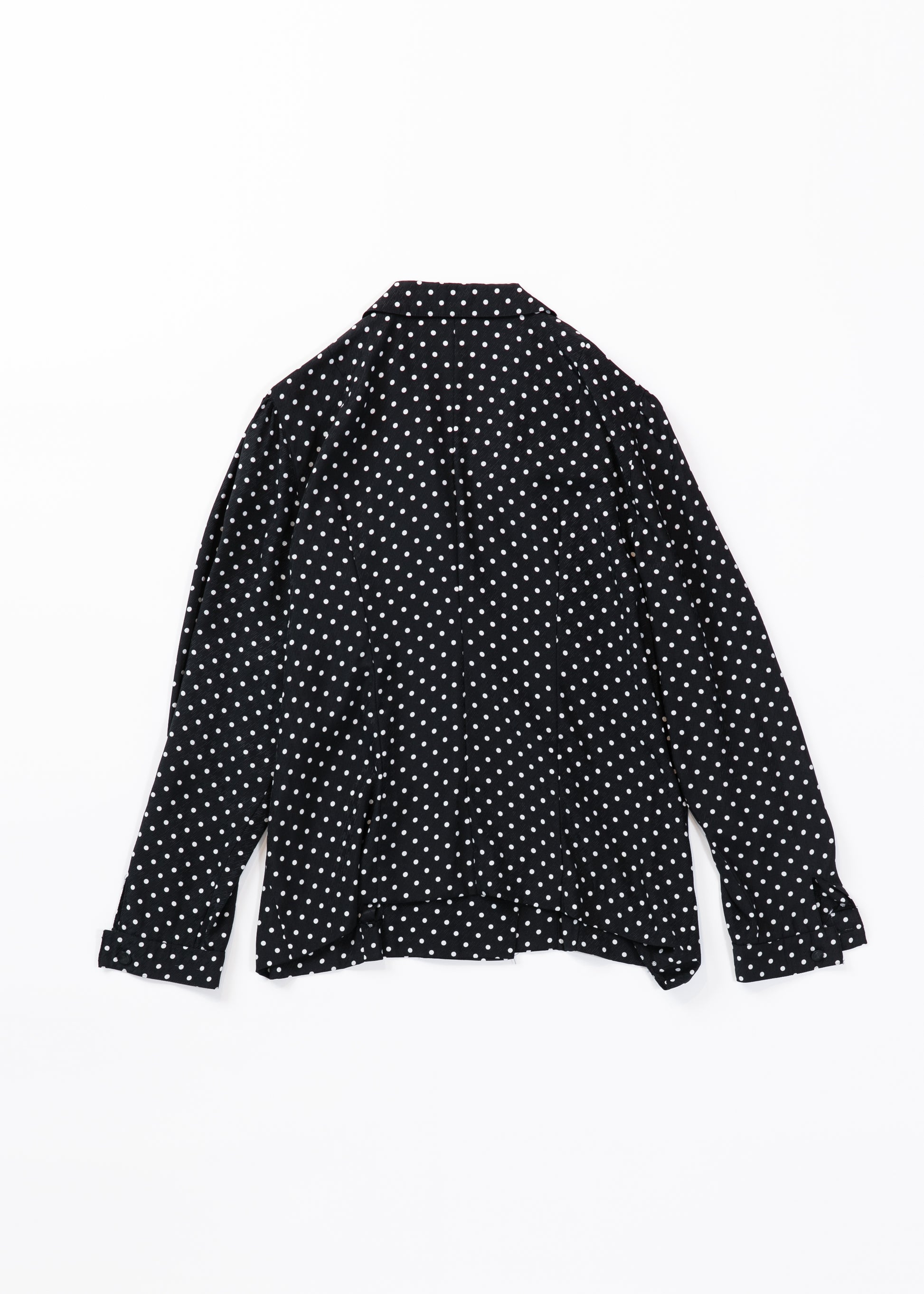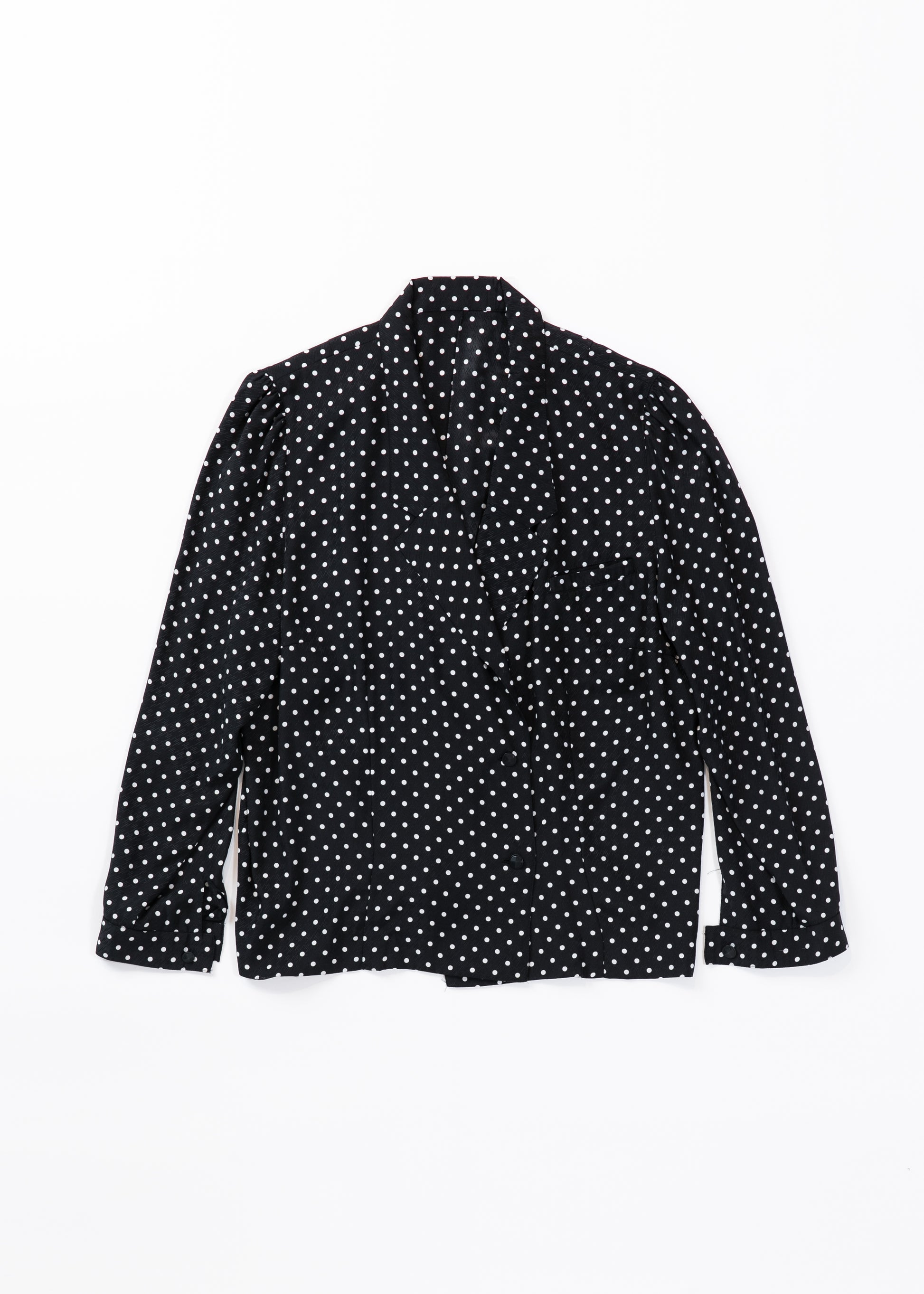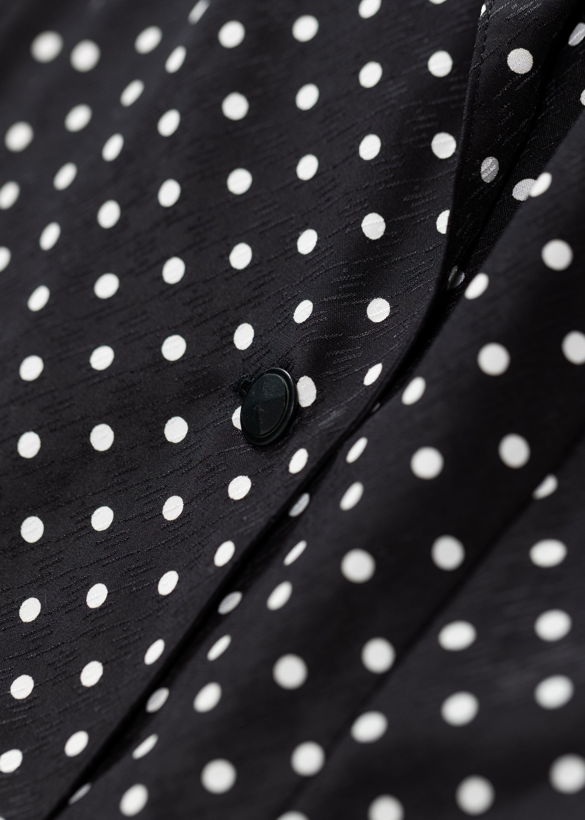 小さなドット柄で、さらりとした生地感でゆったりとした着心地のシングルボタンジャケットです。